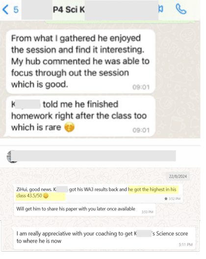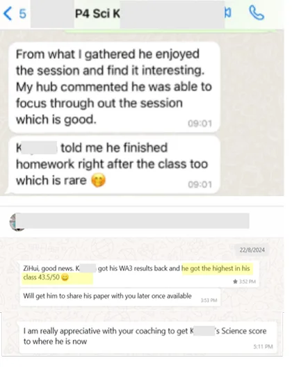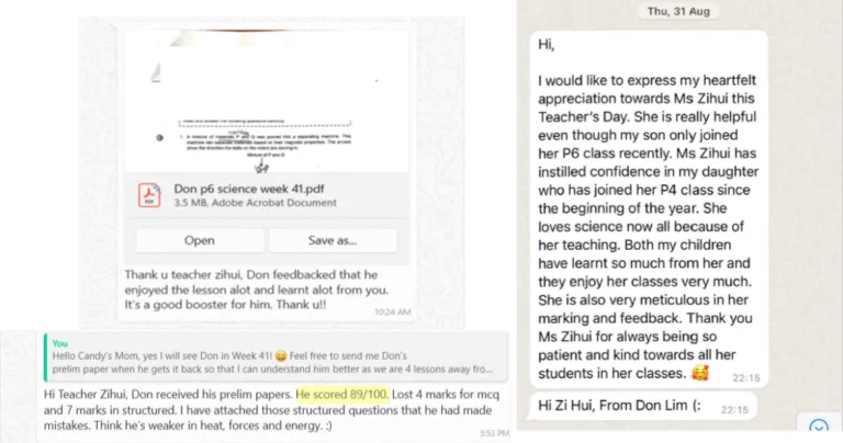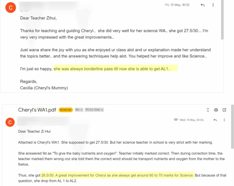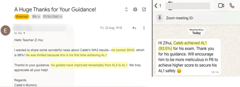 “He was thrilled — this is his first time achieving AL1!”…“Thanks to your guidance, his grades have improved remarkably from AL5 to AL1.”…“Thank you for your guidance. We’ll continue to encourage him to be more meticulous in P6 to secure his AL1 safely.”