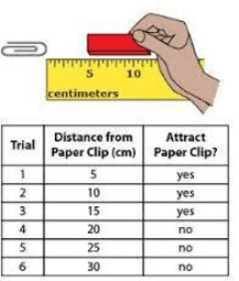 Instructions: Place a paperclip on the table. Slowly move the magnet closer to the paperclip without touching it.